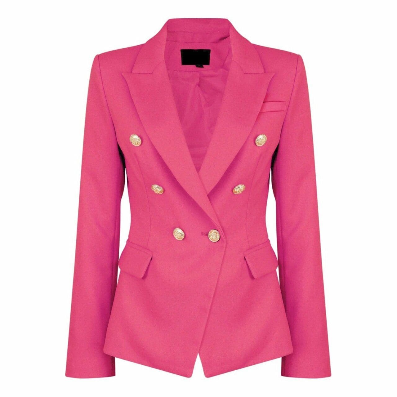 Victoria Designer Inspired Gold Button Blazer Fushia Pink